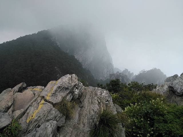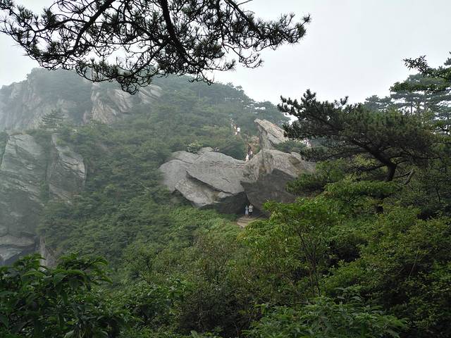 五老洞是分界点,右边爬上几步,就是二峰了,左边小走一番就到三峰,去三峰路上能看到庐山迎客松。