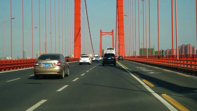 这是武汉的鹦鹉大桥-全长9.18公里,其中正桥全长3.42公里,桥面宽38米。正桥布置双向8车道,设计行车速度为60公里/小时。武汉是限号的城市,只有这坐桥还没有限号!