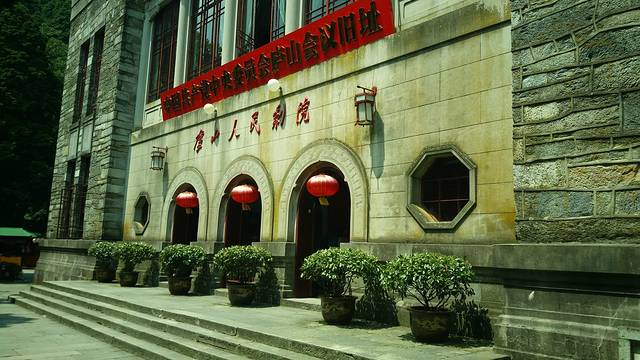 牯岭街-是庐山景区的接待中心,是一座美丽的别致的公园式的云中山城!这是禁止外埠车辆上山的情况,据当地人介绍旅游高峰高时是很塞车的哟!