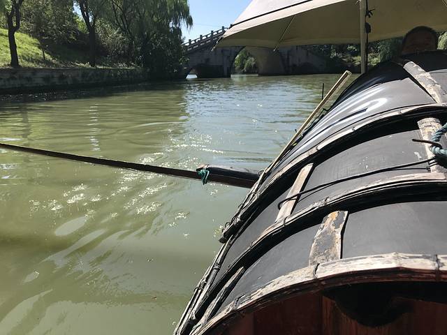 我们选择了坐乌篷船游览,淡季折扣价格75元。大概20分钟的时间,到达山脚下。
