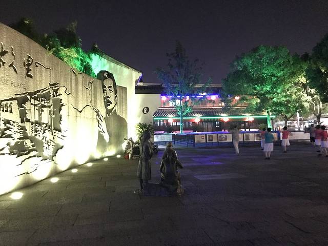 还有晚上看完沈园之夜演出返回酒店路过 看见在门口鲁迅雕像的旁边 大妈们跳着广场舞 音浪冲天