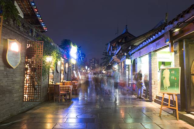 本着“带你走我走过的路,看我看过的风景”,我们马不停蹄的赶到宽窄巷子。上一次来这,是白天。但夜晚的宽窄巷子,和一条普通的步行街毫无两样。