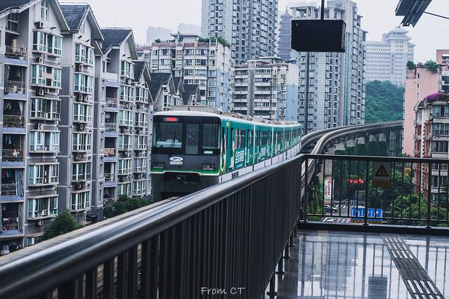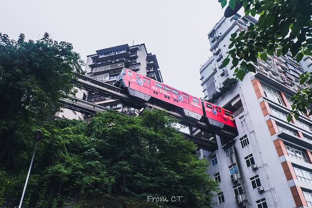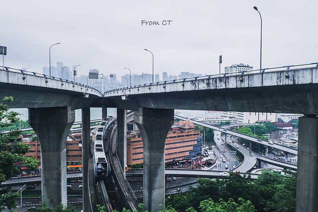 我们也没有特地去逛景点了,只是坐着轻轨2号线转了一趟。在轻轨上向窗外看,会感觉自己处在一座天空之城。