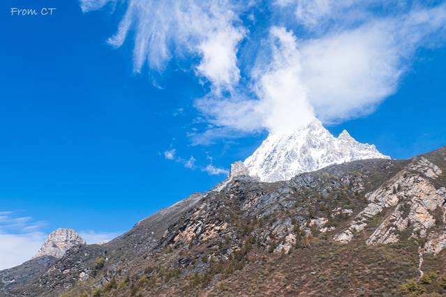 爬了3小时,只为看它一眼。冷风呼呼的吹,太阳穴突突的痛,上气不接下气,走5分钟休息15分钟,终于爬上来了。身在地狱,眼在天堂,算是体会到了。