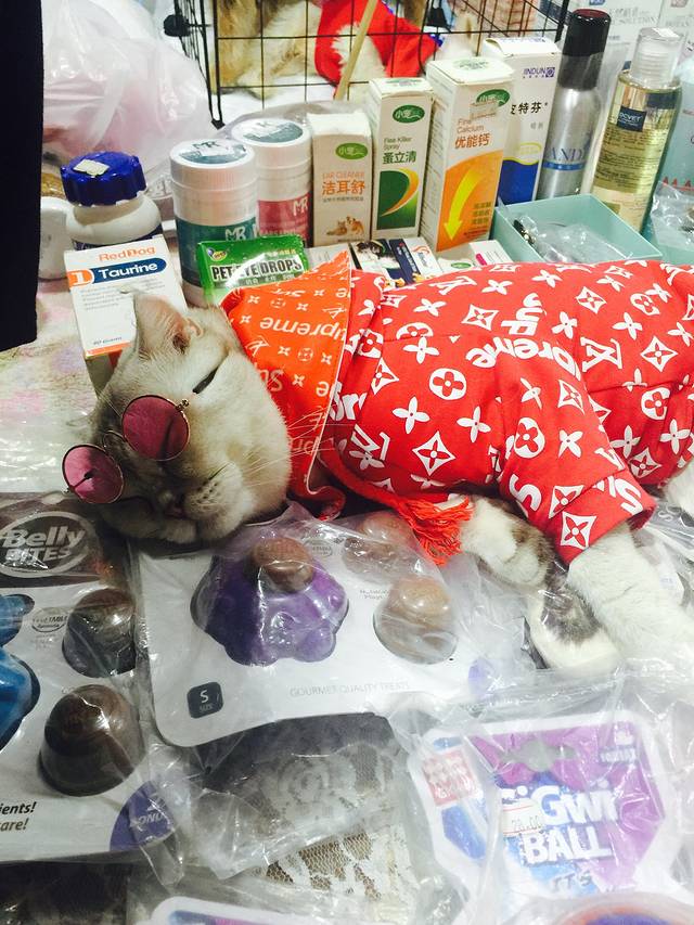 这是夜市的一家宠物用品店,他家🉐宠物个个这么帅气,就是这只懒猫怎么欺负它都不起,太喜欢了!