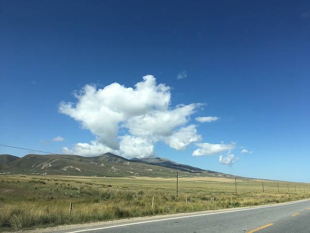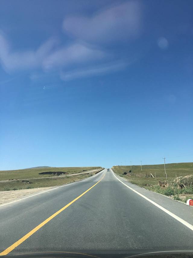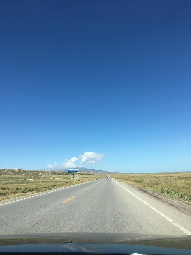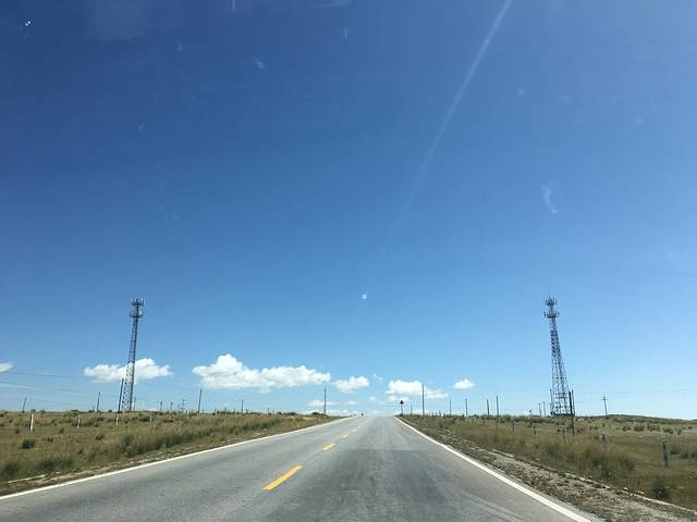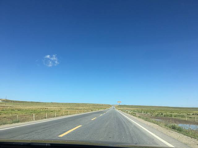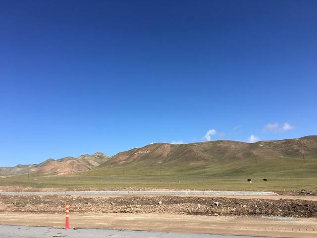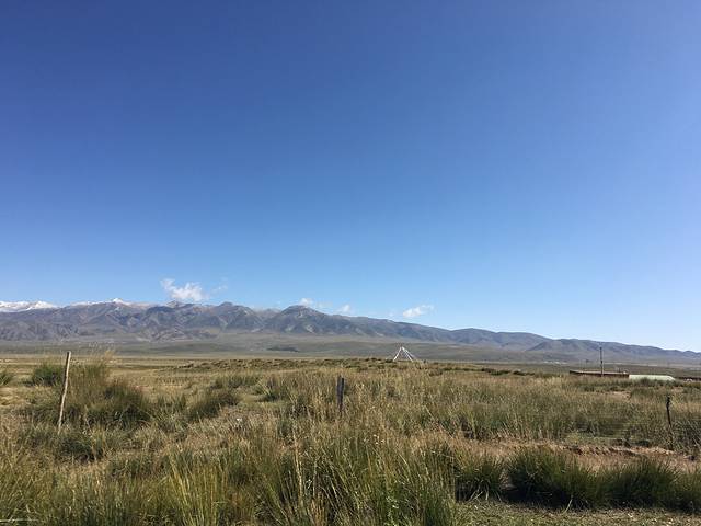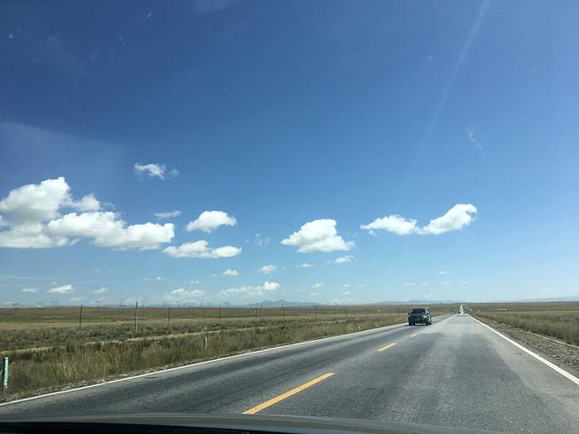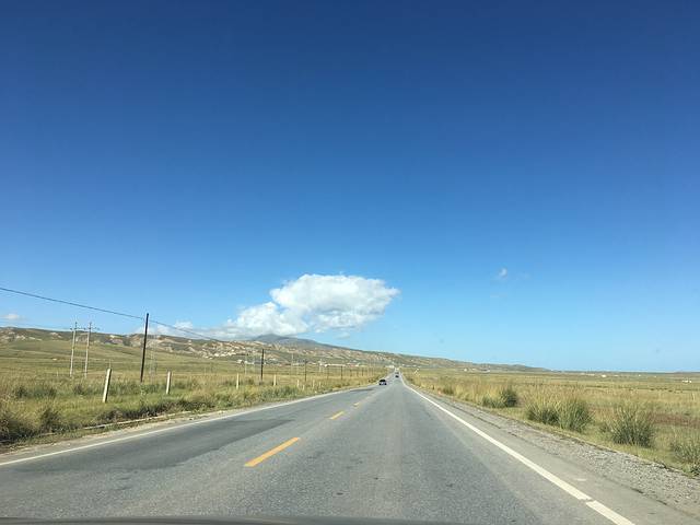 接下去的两个小时,就是在各种翻山越岭中度过,大片大片的草原牧场、成群的牛羊、远处祁连山似乎有雪,因为在车子没有贴膜,被晒得不行,就是那种车里热死、开窗冻死的状态,稍微眯眼休息了会。刚察出来这一路,要去【仙女湖、沙岛】的景区的都可以从主干道开进去,大概也就十来公里路,西海镇【原子城】也是游览景区,我们兴趣不大所以都没进。