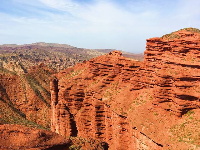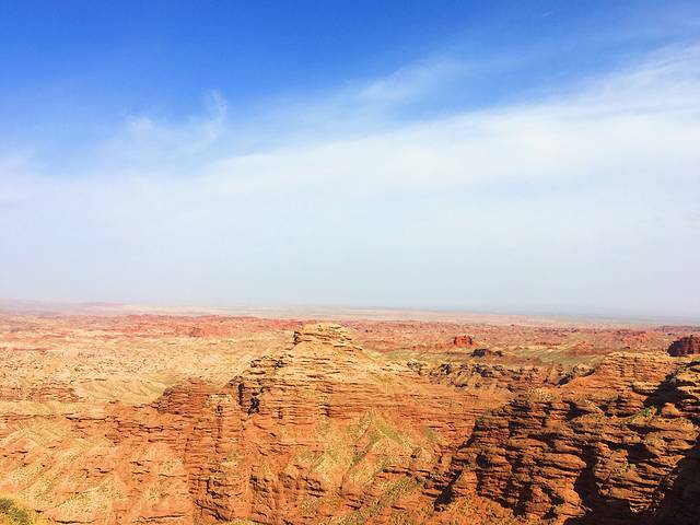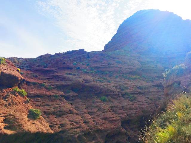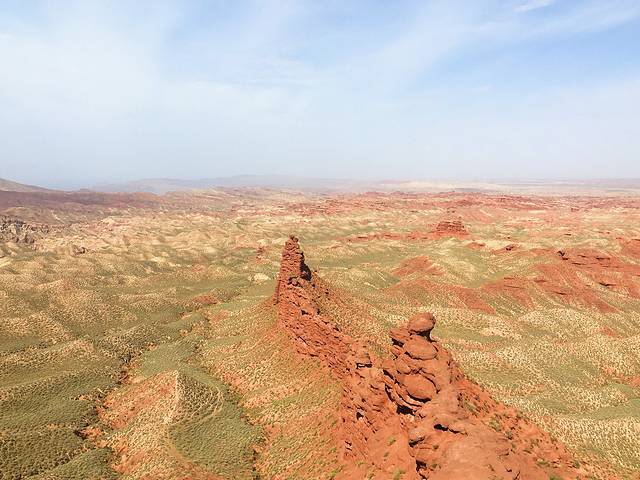 出市区不久就看到【张掖国家湿地公园】,因为距离市区很近有公交车直达,而且不用门票,据说有大西北湿地独特的味道,有时间有精力的小伙伴可以考虑下。车子一路开着,到景区的路还在修,渐渐路就不好走了,颠簸加剧好几次从座位上悬空弹起来,窗外的风光渐渐开始有了丹霞地貌的样子,寸草不生。导游说这一路经常会看到野骆驼,而且由于极度缺水,这边骆驼的驼峰都不是耸立的,正说着刚好看到几只,还真是~~七点半出发,师傅开的比较快,这条路路况不好不建议自驾,大概8点半多到了景区门口,大峡谷门票是100,但是距离景点还有10公里约15分钟车程,必须要再付30块钱换乘景区观光车进去,不然你就在没有任何遮挡的公路上走1个小时吧,不过这个经典配置的导游大大点赞,尽可能为游客着想而且把姓张的城市介绍的很是一番滋味,毕竟人生第一次来到自己姓氏的城市--张胳闭掖以通西域(张掖位于人体腋窝得名)。