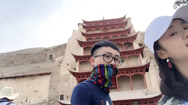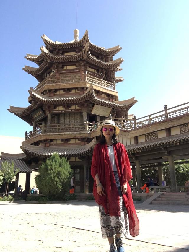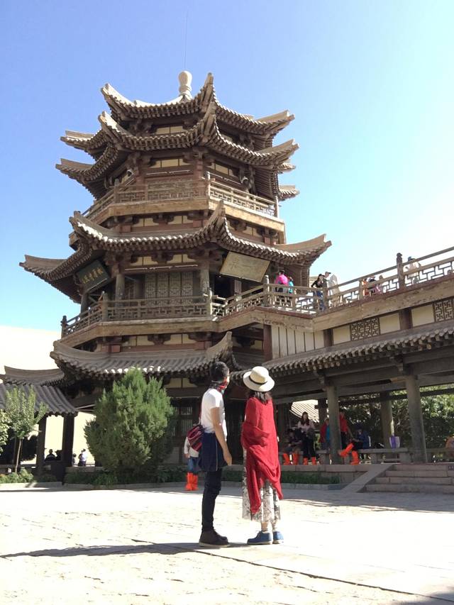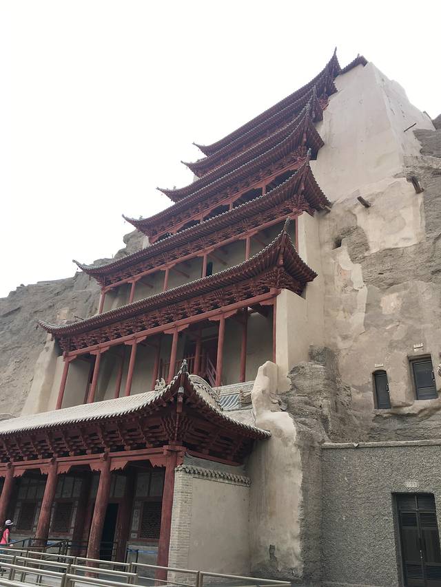 这个就是莫高窟的标志性建筑物九层塔,里面是一尊大佛,在里面只能看到七层。等会玩玩了出去了再拍。