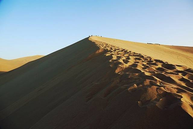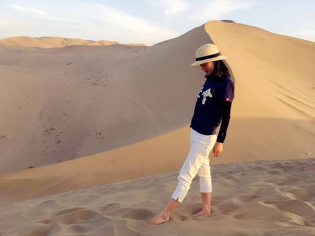 关于鞋套15块钱租用一副,我们没有租,因为我们都穿了高帮的马丁靴,事实证明这个就OK了,第一天我直接赤脚了,刚开始很舒服,踩着各种骆印兴致满满开始爬山,太阳落山以后沙子就变得很冰,傻逼了~