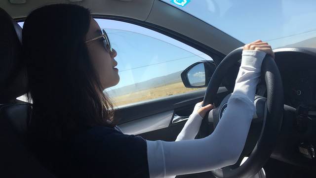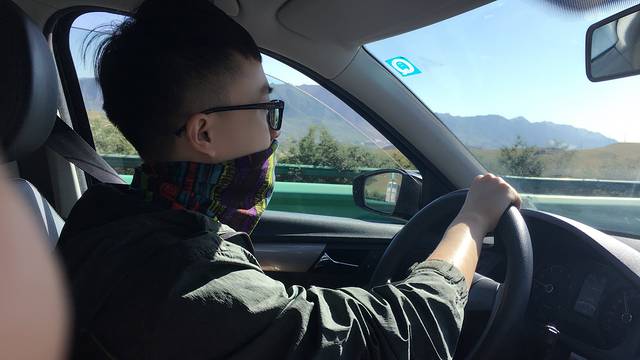 本着让他休息一会换我上的心,简直这节路要了我的命,一路上都紧张的要飞了,嘴里一直喊我害怕;尼玛,这路完全不是之前广阔无垠的大马路,而是各种十八弯翻越山的路,一路上还有大货车,会车就直接吓得我的真的想立马停车换人,但是莫法,咬着牙还是开下来了,终于开到了相对平阔的地段停下车缓口气。