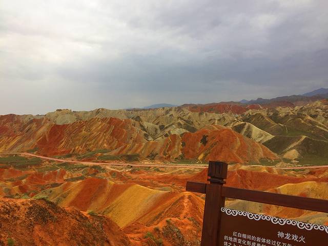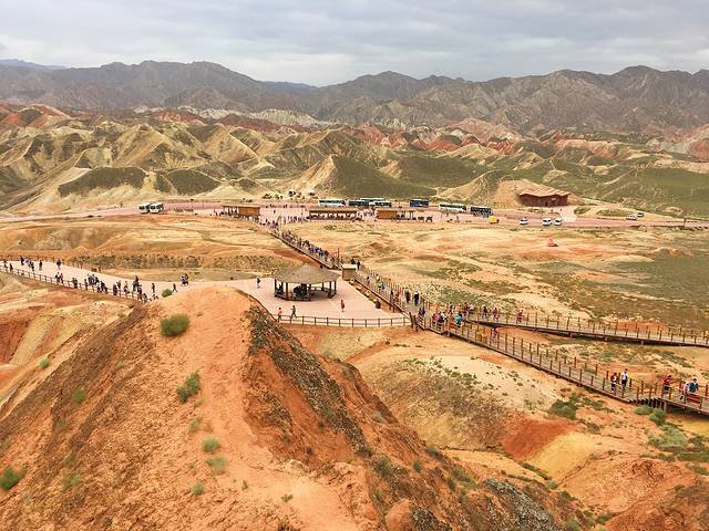 【七彩丹霞】位于张掖市临泽县城以南30公里,市区至七彩丹霞大概45分钟车程,感觉一路上乱糟糟的,环境整治的不好。丹霞景区有好几个入口,所以一定要记得来的时候是哪个入口,最后一个4号观景台下来,景区公交会分不同的线路回到不同的口子。景区门票40块,还要买20块钱的景区公交车钱。我从西入口进入景区后是按照2154(4号观景台最壮观)的顺序游览,也有的人赶时间,1号看完直接就去4号的,进入景区大巴车随便坐,到一个站要看景的就下车,不看这个点的就继续去下一个点,站点之间大概就是2、3分钟的车程,从4号观景台回到出口大约10分钟。