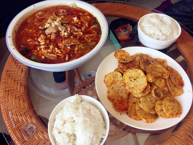 当时特色,全是面食为主,几乎吃不惯,还不如旁边的撸土豆片来的畅快~