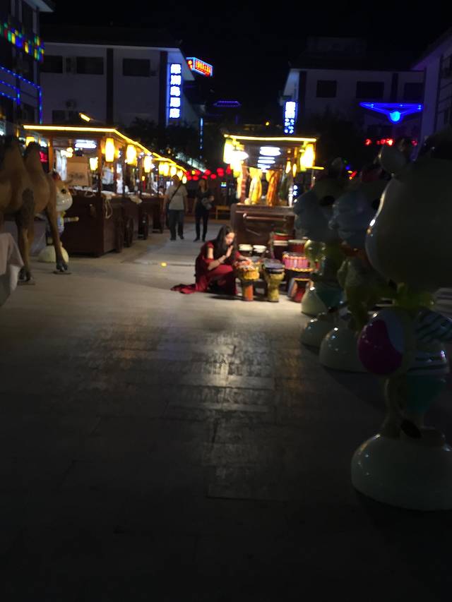 看完出来打车到市区基本上要40块钱,刚好看到3路景区公交是到市区的,3元/人,统一在【沙洲市场】附近下车,沙洲夜市基本上是敦煌晚上比较热闹的点,各种美食、小玩意的集聚地,下车点穿过一个批发市场模样的地方就到了。
