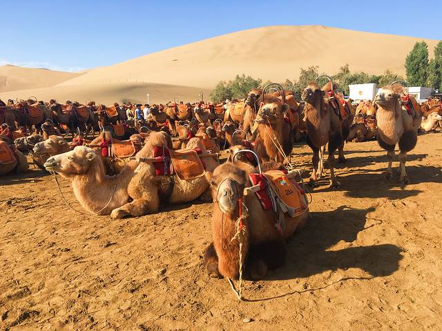 今日行程:鸣沙山骑骆驼——月牙泉——客栈午睡——鸣沙山日落