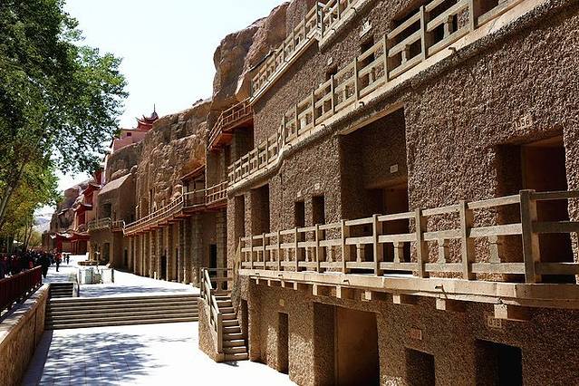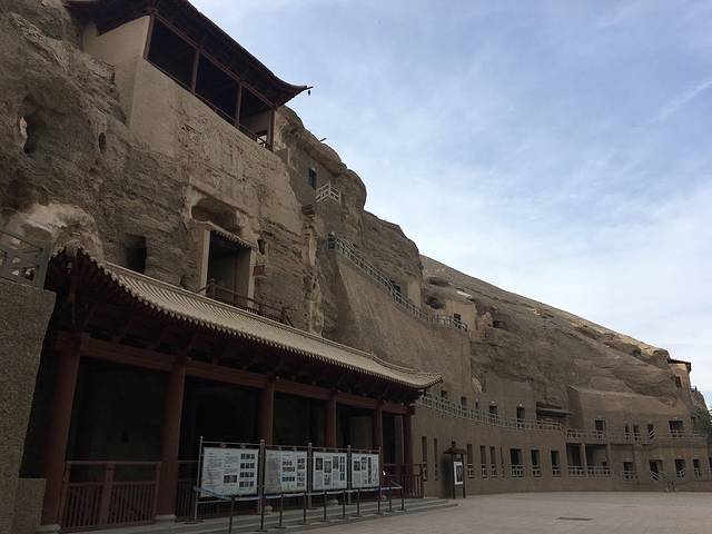 据说为了纪念修为与功绩都“莫高于此”的乐僔和尚,人们将该石窟群定名为“莫高窟”。为了分流每个导游带的窟是不一样的,所以你听完了自己带队导游的以后如果感兴趣可以跟在其他团队里继续听,窟里绝对不允许拍照的(否则要判刑坐牢的)~外围可以随便拍