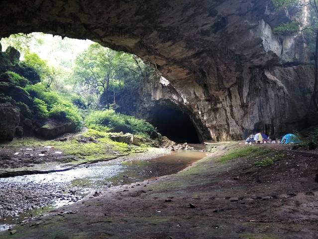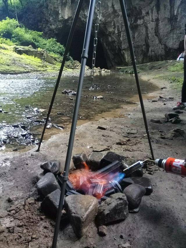 三脚洞,开发了一半的溶洞,里面气温低,无可见光,洞口地形很好,适合露营,野炊,,,
