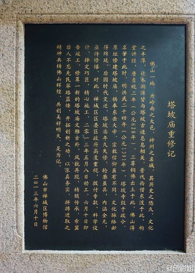 看看这个石雕牌匾,来头可大了。很早以前佛山叫季华乡,因为在塔坡寺原址发现了三尊铜佛,后改名为佛山,塔坡岗也因此成为佛山得名的初始之地。