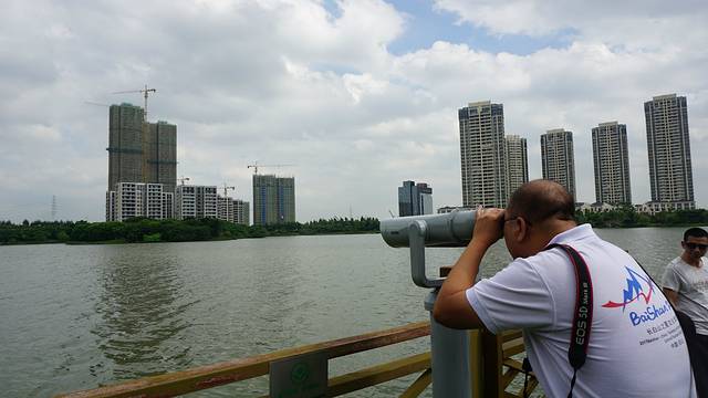 我们在河涌里面划船,这也是划龙舟的比赛场地,我们还划船穿越了龙门,增加福气哦!