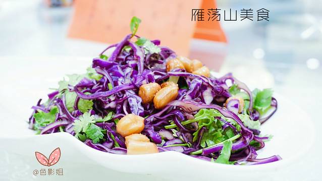 紫色的包菜,上面的花生米脆脆的