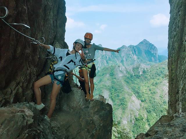 远看,就看不到小小的踏脚了,人都贴在了悬崖绝壁上,但是体验了之后发现,并没有想象的那么难。