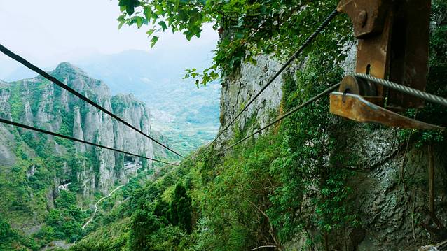 沓屏峰上的铁索,这是从山下往上运物料的途径,现在修建了一条一米左台宽的水泥台阶步道,直通山顶。到了山顶,就可以体验飞拉达啦!