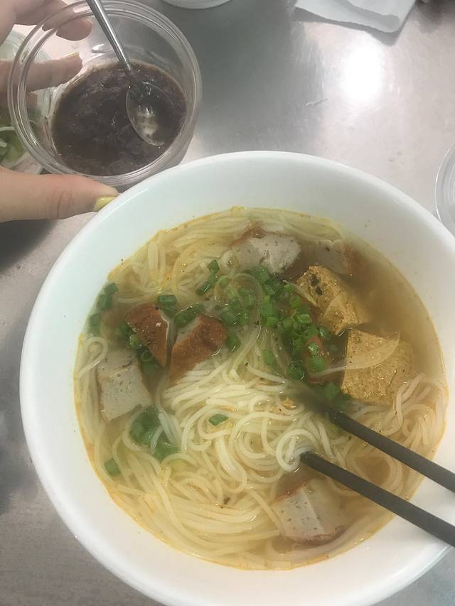 一般的游客住宿都是在芽庄海滩边上的。我们住的是稍微靠里面一点的当地人居住的公寓,类似全自助住宿。意外的发现这真是个交通便利的好地方,也非常幸运的在物价不友好的芽庄吃到了很多便宜的当地美食。楼下米粉店的老板娘十分和善,米粉味道特别好,配上他们家的虾酱味道简直一绝