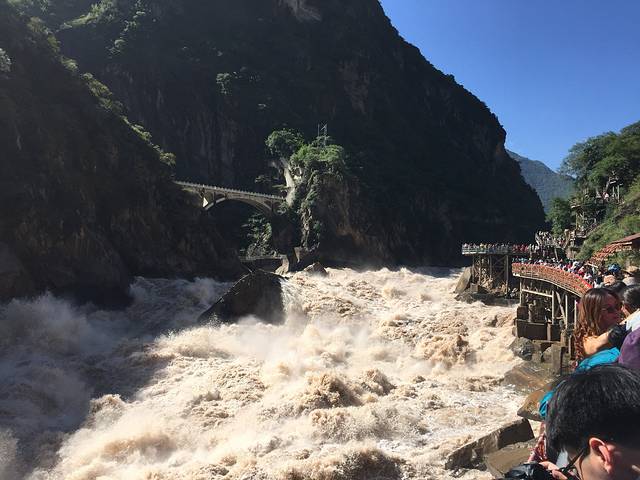 传说有猛虎借助河中的巨石过河,得名虎跳峡,分上中下三虎跳,今天到达的是上虎跳,感受江水的怒涛滚滚,场面非常壮观。