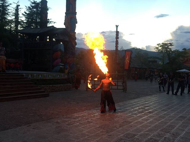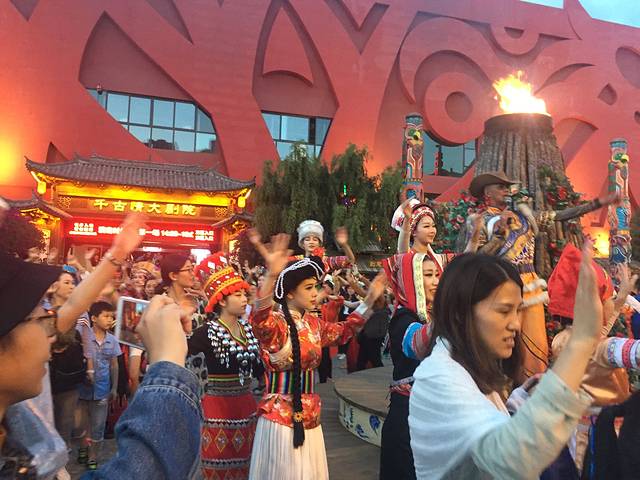 千古情情景剧开始之前,外面有很多免费的表演可以看,这个圣装节很有意思,各个少数民族的圣装特别好看,一大群人来自天南地北的人围在一起跳舞。