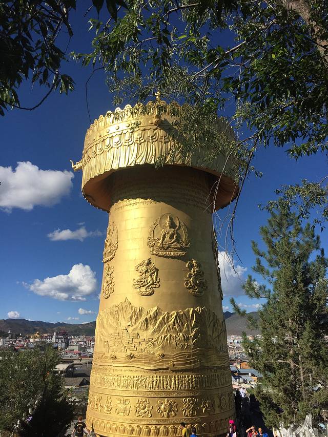 一路玩到香格里拉县城,最后来转一下世界上最大的转经筒。一定要顺时针转,包括进寺庙也要顺时针转一圈,这个要很多人一起才转得动。
