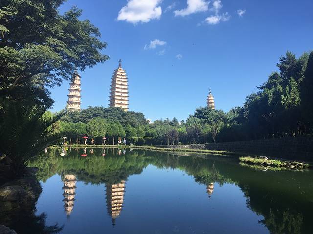 三塔建立时间有点模糊,中间的主塔叫千寻塔,跟西安大雁塔造型相似,初建于唐南诏时期,完善于宋朝大理国时期。山上崇明寺供奉着观世音菩萨真身,据说中国只有大理跟浙江某个寺供奉着观音菩萨真身,观音菩萨有33种化身,大部分时间以化身示人。弥勒佛其实现在是个菩萨,要56亿年后才能成佛,是唯一以中国人面孔为原型的菩萨,据说是浙江地区的一个布袋和尚。这里还有很多生活得自由自在的小松鼠。