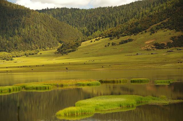 香格里拉普达措国家公园内有明镜般的高山湖泊、水美草丰的牧场、百花盛开的湿地、飞禽走兽时常出没的原始森林。碧塔海、属都湖两个美丽的淡水湖泊素有高原明珠之称,湖中盛产裂腹鱼、重唇鱼;秋冬季节大量的黄鸭等飞禽在湖边嬉戏,天然成趣。