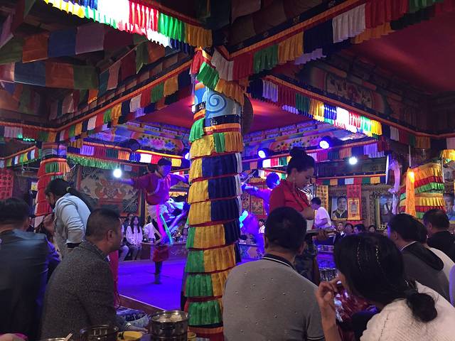 晚上,参加了藏族大家庭的宗巴盛宴。品尝酥油茶,青稞酒,观看藏族同胞热情洋溢的表演。