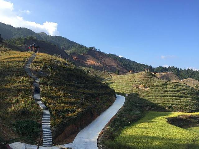 因为还在开发中,很多花苗都才种上,而且其实这个地方有点像墓园。。。。。。。说道这里自行想象吧,看完花海往山下走15分钟就到平安族梯田观景台了,这里的梯田比较像是一种小景观的美,