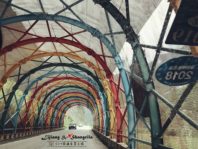 一路上都是郁郁葱葱的高山和黄色的江水,伴着微微细雨。。突然出现了满屏的彩色,很欣喜。不知道是不是施工的防护措施。。不远处有在建的丽香高速,以后从这里去香格里拉一定更方便。