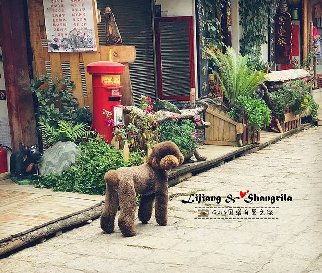吃饱继续乱逛,首先遇到的是一只大型的狗狗。表姐养了一只喜欢朝我吠的泰迪,这个体型,可是它的好好好好多倍。。超级配合地回头给我们拍照。。后来一路发现,古城里养了好多名贵的大型犬。。
