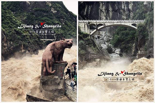进入景区,先来张全景,看似平静,水声轰鸣。。关于虎跳峡的各种介绍和故事,我们也是从百度找的,就不描述了。。