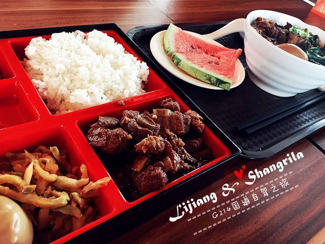 小S同学向女主咨询了附近的一些景点和一些必吃的东西。。原谅我真觉得自己撑不下去了,一点都不想出门,所以决定在客栈解决晚餐。点了一份炒饭、一份烤肉和一份青菜汤。。在还没上菜之前,我躺在床上感觉就快晕过去。。饭菜做得挺精美,就餐环境也很好,但我基本是吃不下的。。