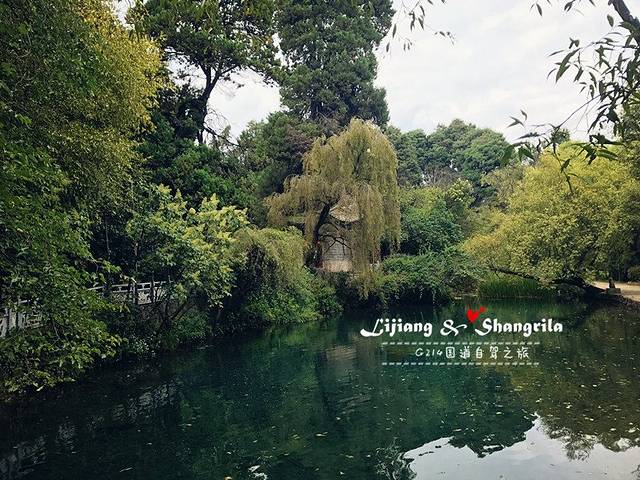 吃完梨子我们要去客栈老板推荐的九鼎龙潭。本来以为路会很难找,随便逛逛就找到了。潭水很清,里面满是水草。榕树、柳树各种品种的树垂入水中,如果是飘满落叶的秋天,是不是满潭金黄。。不晓得丽江有没有颜色分明的秋天。。