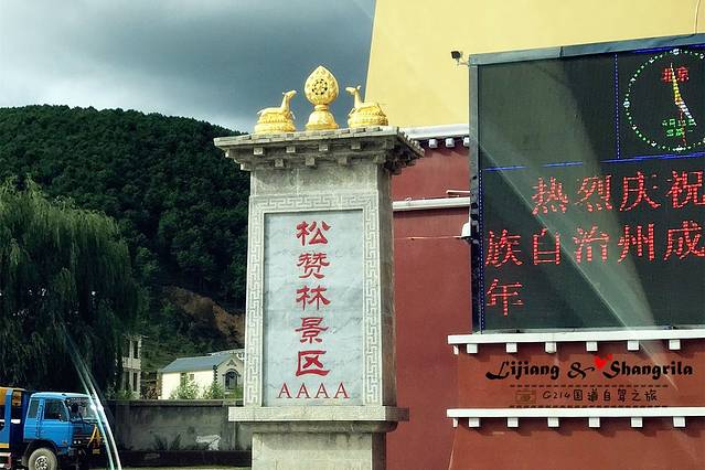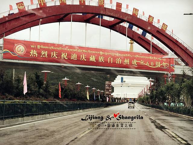 进入迪庆,满满的藏族风格逐渐显现。看到路边的广告牌,临时决定去去虎跳峡,小S的邻居哥哥力荐的景点。。更为惊喜地发现,我们赶上了迪庆藏族自治州成立60周年这个大喜日子,很激动。。