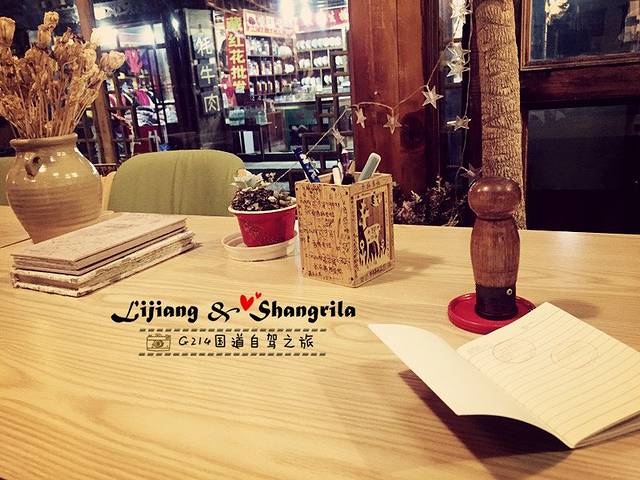桌上有一个日记本,记满了匆匆过客的心路历程,有失恋散心的、有独行寻找回忆的、有情侣度蜜月的、有闺蜜庆典的。。我翻开自己的旅游笔记本,戳满了店家准备的印章。。“趁着年轻去旅行”、“我在丽江等你”……最后在今天的行程里,用力地盖上了“天堂·时光”。。