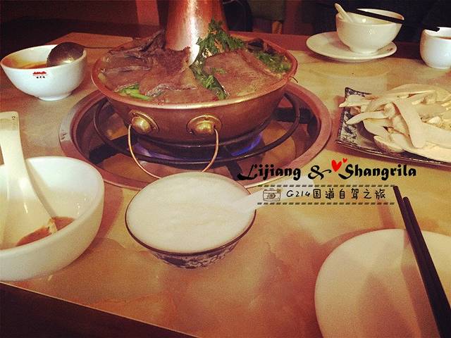 我们点了一个小份的牦牛火锅,一个小份的松茸,还有一份酸奶。。可能是海拔高沸点低的原因,牦牛肉无论煮多久,口感都特别嫩。松茸很鲜甜,酸奶很开胃。。。胃口大开后,觉得所有东西都很好吃很好吃。。餐馆老板对客人的态度也超级好。。这一餐吃得很满意。。