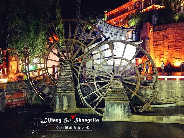 风很大,我们没有停留太久,然后继续逛街,恨不得在大研古城的这两天,把整个古城逛个遍。逆着河流,我们到了大水车。。这个标志性地标在找攻略的时候出现过很多次,包括TB上好多一日游的团,基本都是在这个地方集散。。之前甚至还想把客栈订在这附近。。酒吧街上热情的小哥不停地招呼进店,沿路有多繁华和热闹,简直无法形容。。嘿嘿!
