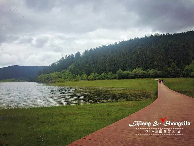 栈道旁成片丰美的水草。什么动物是以水草为食物的?感觉味道一定很鲜美。好想沿着蓝色的圈圈把云层拨开。。天公不作美,感觉有点遗憾。。