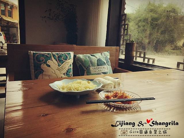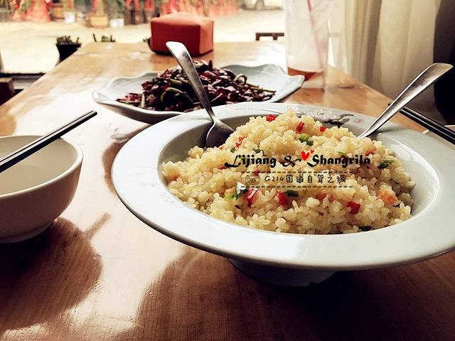 喜欢吃三文鱼的小S同学做攻略的时候满心期待地要来丽江大吃一顿,后来了解才知道不是日料店的那种三文鱼,果断放弃了。。我们点了豆腐汤、竹筒饭、雪山鱼和炒南瓜尖。。不知道是我们菜点得不对,还是不合口味。。。。。最后对这份炒南瓜尖比较有印象,以前没吃过,炒得很脆。。分量都很大,吃得很饱都吃不完。。4个菜138元。。