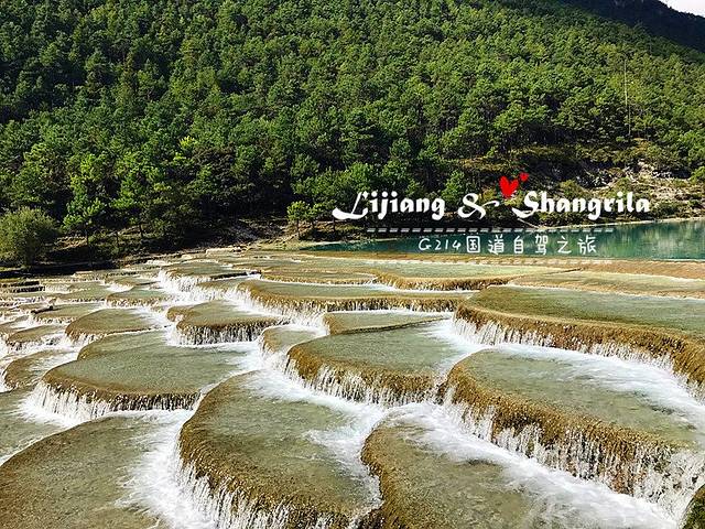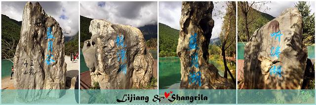 第一站下车,拍照的人好多好多。。要拍个经典的到此一游剪刀手都没办法。。果断往下走。整个路线是:白水台——玉液湖——镜潭湖——蓝月湖——听涛湖。。恩啊啊,集不齐各大石牌。。。