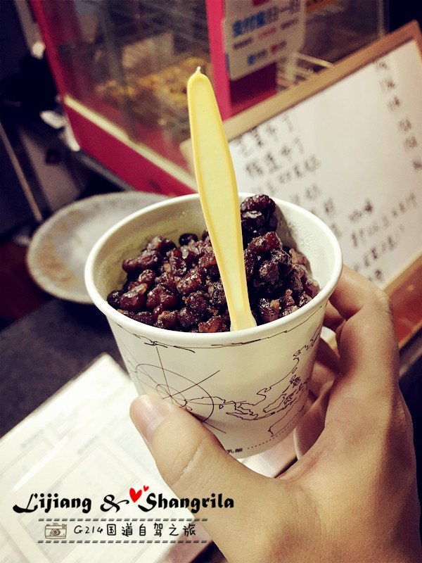 刚吃完肚子很饱,既然遇到了不吃,又怕觉得遗憾。果断排队点了杯红豆酸奶。。10元/杯,小迷你。。小SS不喜欢吃酸奶,我又怕太凉。。还好是迷你杯,两人吃得很勉强。。卖相不错,原谅我对吃的要求很低很低,所以吃不出牦牛酸奶和平时超市买的酸奶的区别- -!!