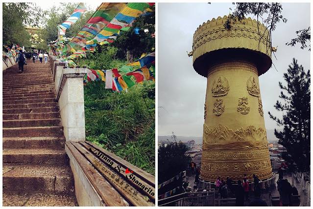 时间过得挺慢的,我们环着栈道走了一圈,拍了点照片。。天气很适合,就是太喘了,我简直快走不动。。离我们的目的地独克宗古城还有点距离,想赶早到达,大概也就停留了一个小时,继续出发。。