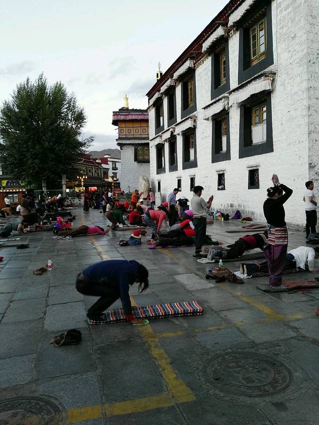 围绕大昭寺的是八廓街,虽然已是傍晚,依然很多围绕它磕长头的信徒,男人女人,老人孩子,满满的虔诚,入乡随俗,就围绕大昭寺走了一圈。