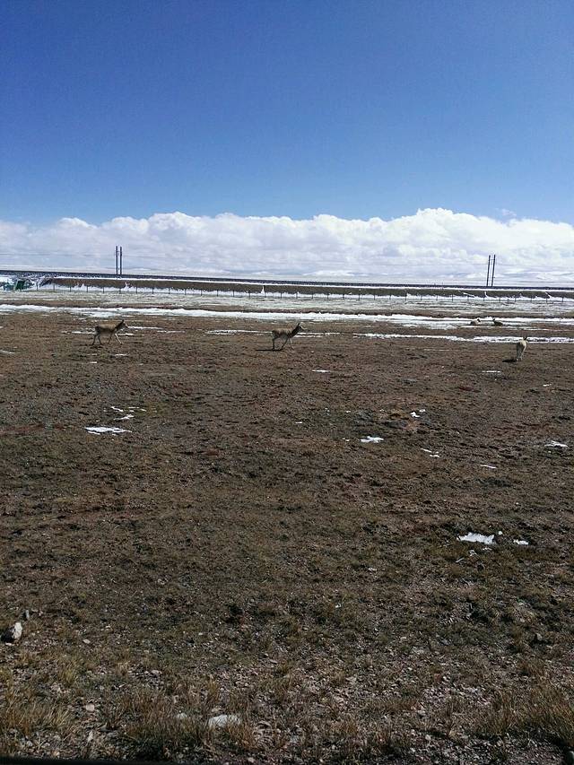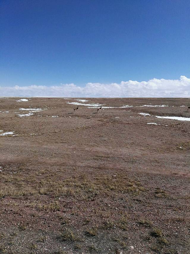 驶入无人区,路边出现了藏羚羊。藏羚羊很是怕人,下车想和它们合个影,没走近就跑掉了,也许盗猎把它们搞怕了。