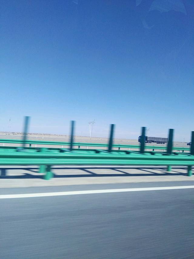 从格尔木出来,进入荒凉的戈壁,高速在荒原上穿过,高速上飞驰的车辆,没有参照物,仿佛如同在水面上快速滑行。